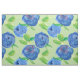 Um tecido decorado com rosas azuis de indigo de cor aquosa, com um toque de rosa-mave no centro, desenhado numa grande repetição floral num fundo verde-macio de menta. Você pode editar a cor do plano de fundo para ajustado das suas necessidades.
