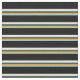 Este design apresenta um padrão de faixas azul-claro, laranja, ardósia escura, branco e preto.