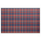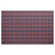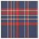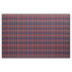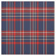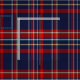 Padrão rico de azuis escuros, xadrez vermelha e branca (tartan).