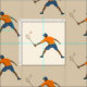 Tecido temático Badminton com jogadores de badminton.