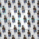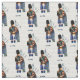 Um padrão repetido de tecido de um bagpiper de aquarela apresenta uma peça solitária tocando, com vibrantes espirais de cor fluindo das gaitas de fole, se misturando a um pano de fundo de partituras musicais esmaecidas e sobrepostas. As pinceladas suaves e fluidas e os tons de terra das tubulações são harmonizados com a delicada escrita da partitura, criando uma atmosfera rítmica e nostálgica que se repete graciosamente através do tecido.