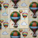 Um colorido, excitando, imagem da era do Victorian dos balões de ar quente que dançam entre as nuvens, este tecido pode fornecer muitas horas da inspiração e divertimento crafting.