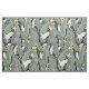 Essa criação botânica apresenta a grandeza das grandes folhas de bananeiras, exuberando sua beleza exuberante, ao lado de Cockatoos e Chameleons. Disponível em duas cores: "Verde quente" e "Azul sereno".