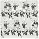 Uma ilustração a preto e branco de um grupo de ursos panda tocando instrumentos musicais.