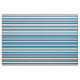 O tecido riscado de verão apresenta um padrão de stripe horizontal variado em tons legal de verão de marinho, lagoa, azul piscina e branco.