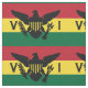 Bandeira das Ilhas Virgens Americanas num fundo de listras vermelhas, amarelas e verdes
