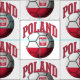 Excelente para projetos de desenho para jogadores de futebol, treinadores e fãs, nosso design apresenta uma bola de futebol com a bandeira polonesa gravada na bola e a palavra "Polônia" gravada no topo em letras grandes e em negrito. design original de Designs Holiday Hearts para TJsSportsmania. Clique em "personalizar" para alterar as cores do plano de fundo.