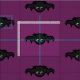 Um morcego bonitinho no estilo kawaii, num fundo roxo. O caractere foi repetido em um padrão de bolinhas.