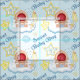Adorável Menino Bawling sentado em uma nuvem fofinha com garrafa de bebê, pegadas e outros sobre fundo azul pastel e bolinhas branca. Sotaques de estrela divertida. O texto diz "Sweet Baby Boy". Design disponível também na versão da menina.