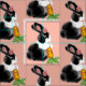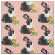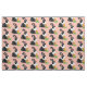 Com um doce coelho preto e branco holandês pintado e sua cenoura colorida, este tecido tem uma sensação de vintagem e feminina. O coelho parece macio e veste uma margarida rosa perto do ouvido e segura uma cenoura folhada. O plano de fundo é cor-de-rosa-claro. Adorável, tradicional decoração para o berçário de um bebê! As cores preto, branco e rosa oferecem muitas possibilidades decorativas!