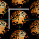 Ilustração da cena do Dia das Bruxas de Laranja e Negro incorporando uma silhueta de um cemitério da igreja com pedras, morcegos voando para fora da barriga contra uma lua fantasma, um gato preto no telhado e uma aranha e teia pendurados em uma árvore nua. Excelente para o outono e a época das bruxas como um presente para si ou para um apreciado familiar para os fazer sentir especiais. Ilustração de arte digital desenhada à mão exclusiva do Design gráfico HJ usando o Vectornados.