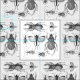 desenhos preto e branco do vintage dos besouros e dos insetos