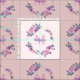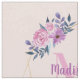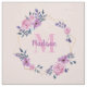 Bloco de retalho de colcha personalizado com nome e monograma. Lindo tecido rosa bege com uma grinalda floral rosa e roxa e moldura fina dourada simulada. Personalize-o substituindo a inicial e o nome de exemplo por um nome personalizado e letra de monograma. Compre um único bloco escolhendo a opção de amostra ou compre tecido por metro e corte vários blocos idênticos dele. Bloco de colcha com nome personalizado elegante e sofisticado para suas criações de colchas exclusivas.