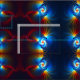Representação fractal, multicolorido, de blueshifting gravitacional; deslocamento da luz em direção à extremidade azul do espectro que ocorre à medida que os fótons se tornam mais energéticos quando caem em um poço de gravidade. Ao contrário do mais conhecido blueshift Doppler, efeito aparente que é resultado do movimento em direção ao observador, o blueshift gravitacional é real, independente do ângulo recebido do fóton. O blueshift gravitacional é uma consequência natural da conservação da energia e da equivalência de energia em massa.