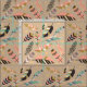 Imagens bonito de cor azul-lacrimejo, ouro, cinza escura, rosa poeirento e creme flutuam sobre um fundo leve e leve neste tecido único. Excelente para muitos projetos de artesanato ou de lar, ou roupa.