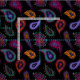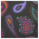 Padrão de Boho paisley, grande repetição com púrpuras, burgundy, ouro, azul-serrilho sobre fundo preto.