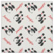 Padrão de pinos vermelhos pretos bola de boliche com tecido personalizado com nome mostrando um ícone minimalista de três pinos de boliche preta no fundo branco.