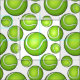 Um tecido branco que caracteriza um conhecimento de bolas de tênis de vários tamanhos para suas necessidades criativas.