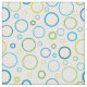 Tecido com um padrão brilhante e alegre de bolha de primavera em tons azuis e verdes.