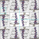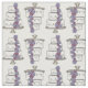 Tecido apresenta um bolo de casamento de três camadas decorado com gelo branco e flores rosa e roxas. Criado de uma ilustração do marcador original.