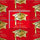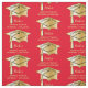Este design de boné de formatura de gradiente de tom dourado está pronto para você personalizar com seu ano de aula em negrito e o nome de formando favorito e escola em tom dourado e tudo em um fundo vermelho (ou você pode mudar de cor). Ilustração original e design por Designs Holiday Hearts (todos os direitos reservados).