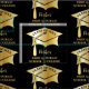 Este design de boné de formatura de gradiente de tom dourado está pronto para você personalizar com seu ano de aula o nome de formando preto e favorito e a escola em tom dourado e tudo em um fundo preto (ou você pode mudar de cor). Ilustração original e design por Designs Holiday Hearts (todos os direitos reservados).