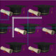 Tecido de um boné de formatura e de um diploma. Colocado sobre um bonito fundo roxo.