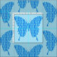 Tecido de borboleta padronizado em um impressão de papel de parede abstrato em tons ricos de luz e azul médio