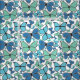 Este tecido divertido inspirado na safra apresenta um padrão de borboletas azuis morfo em um estilo retrô desenhado à mão em tons de azul brilhante, azul médio e azul-claro, todos ponteiros com preto sobre um fundo branco.