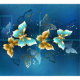 Composição de borboletas voadoras, joias, douradas e escuras em fundo de joias texturizadas. Borboleta ouro.
