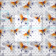 Borboletas brancas e coloridas e bolinhas azuis têm um padrão uniforme sobre fundo branco. Modelo de tecido personalizável