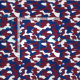 Um padrão de camuflagem em burgundy, azul e branco.