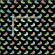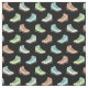 Esse tecido padronizado é perfeito para a elaboração de projetos com um tema externo. Ilustrações de botas de caminhada em cores pastel bonito são colocadas sobre um fundo preto.