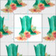 As botas de vaqueiro de turquesa com buquê floral imprimem no tecido