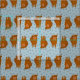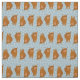 Ilustrações bonitas de bovinos de terras altas em castanho avermelhado são colocadas sobre um fundo de bolinhas azuis pálidas nesse tecido padronizado.
