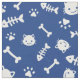 Mostra um padrão de cabeça de gato fofo, estampagem de pata, osso e esqueleto de peixe. O gato incrível está sorrindo. Design branco sobre fundo azul. Para amantes de gatos, donos de animais de estimação, meninos ou meninas, e crianças. Faça cortinas, pijamas, camas, roupas ou figurinos com este adorável padrão uniforme.