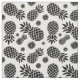Escolha seu próprio abacaxi colorido com esta fruta tropical gráfica e flores repetem tecido padronizado em branco e mostradas aqui em preto. Ideal para frutas e artesanatos tropicais e projetos de design de costura. Arte de padrão original e design por Sarah Trett.