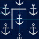 Uma parte original de tecido que caracteriza um marinho elegante e um teste padrão branco da âncora.
