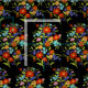 Tecido Buquê Colorido de Flor Selvagem em Preto
