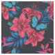 Buquê desenhado à mão de flores tropicais, palmeiras e borboletas