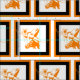 Laranja Longhorn vestindo um chapéu de cowboy com fundo branco. Há também um quadro preto e laranja. Este design também está disponível em outros itens na loja de dias de rodeio.