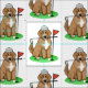 Golfe Goldendoodle - Cute Doodle jogando golfe no campo de golfe com golfe clube, bola de golfe e boné/chapéu. Copyright © Angi Laframboise. Raça de cães engraçada e presentes de cartoon relacionados a esportes para amantes de cães e amantes de golfe.