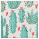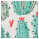 Um fundo branco chico decorado com cacto, cactos e suculentos e corações vermelho e verde.