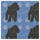 Esta linda e divertida silhueta de sombra preta Poodle fica com um sorriso, contra um fundo azul com pegadas e trilhas em cinzas, azul e rosa. Design por Diane Blackman. O mesmo design está disponível com outras imagens divertidas de cães.