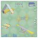 Uma variedade de obstáculos da agilidade do cão criam um teste padrão colorido para recordar um de seus esportes favoritos do cão.