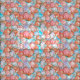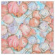 Um tecido com cascas de couro cabeludo desenhadas à mão com tinta e pintadas com aquarela em tons quentes de cor rosa-de-salmão, púrpura macia e azul no fundo com manchas reais de cor azul-d'água.