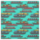 Tecido azul-turquesa, de cor azul, modelado à mão, com barcos de canal, barcaças e barcos domésticos. O tecido perfeito para o decoro interior do seu barco doméstico