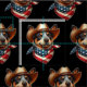 Um Heeler Azul retratado como um vaqueiro vestindo um chapéu de couro pairava de forma elegante com uma bandana de bandeira dos EUA, incorporando orgulho americano e encanto temático.