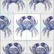 Tecido Caranguejo Azul Vintage #1 Desenho