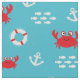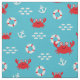Uma mascote feliz do caranguejo com olhos grandes. Está levantando com suas garras grandes acima no ar, mas é muito amigável e bonito.